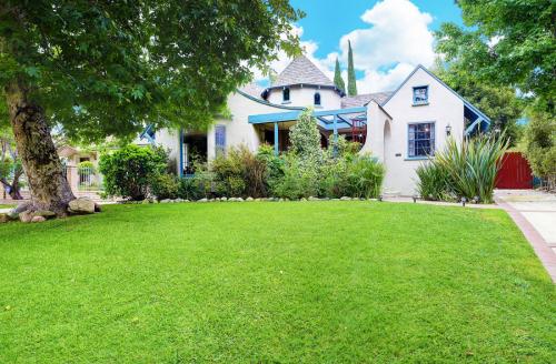 Charming Country French Normandy home, with authentic floor plan. 3 bedroom / 2.75 bath, grassy yard, gleaming pool, plus an extra bonus room. Located on a wide tree lined street, in the fashionable Museum Square, off Wilshire Blvd, and Beverly Hills adjacent. This charming home has hardwood floors throughout, gourmet eat in kitchen, large step down living room with beautiful original crown molding and a decorative Bachelder-like fireplace and a formal dining room, very spacious bedrooms and an extra large den/library with a Baronial fireplace, overlooks an inviting pool. This home is an entertainers delight, and is rich with old world charm, in a prime location!